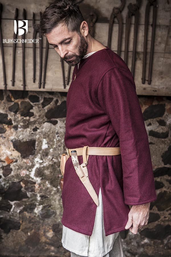 Unsere langärmelige Wikinger Tunika Lodin aus Wolle von Burgschneider wurde aus robustem und authentischem Wollstoff in Handarbeit gefertigt. Tuniken aus Wolle wurden schon in der Antike von den Römern getragen und waren für Wikinger lebensnotwendig um der rauhen See und und dem kalten Wetter im Norden Europas zu trotzen. Eine solche Wikinger Kleidung wurde eine Untertunika kombiniert, wie auch auf unseren Bildern zu sehen ist um sich durch den Zwiebeleffekt warm zu halten. Diese Wikinger Tunika aus Wolle eignet sich für die kalte Jahreszeit und dem Übergang für Reenactor im Lager, für Besucher und Händler auf dem Mittelaltermarkt und für viele LARP Charakter die einfach nicht auf der Winter Con erfrieren möchten!