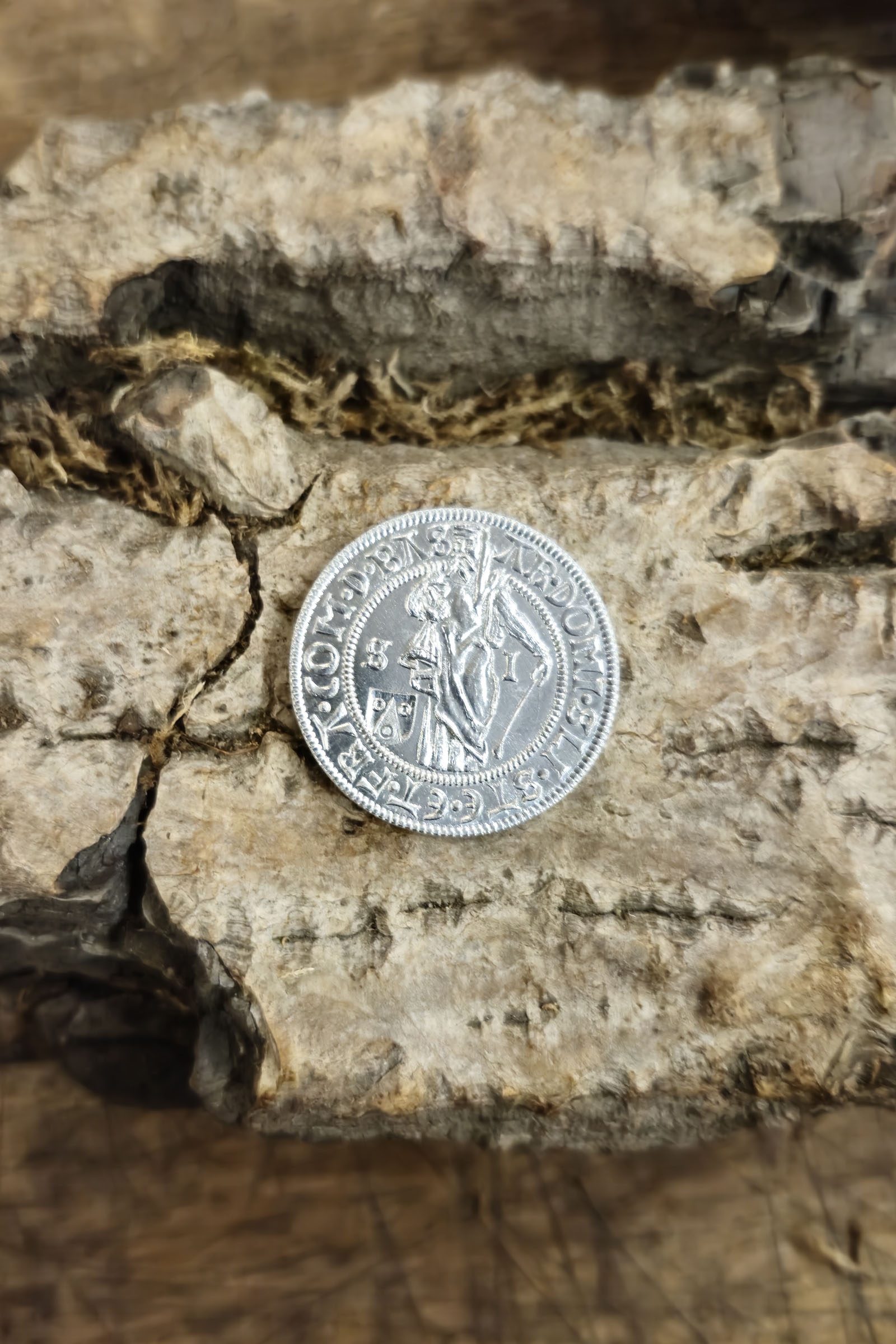 Der Viertel-Thaler oder auch Joachimsthaler ist ein Replik aus der böhmischen Renaissance und eine historisch sehr bedeutende Münze. Hergestellt aus Aluminium mittels klassischer Prägetechniken durch einen handgravierter Stempel besitzt sie eine authentische Optik und hohen Detailgrad. Anfang des 16. Jahrhunderts entdeckten die Herren von Schlick im Erzgebirge ein so großes Silbervorkommen, dass sie an dieser Stelle die Stadt Joachimsthal gründeten. Von König Ludwig I. (1516–1526) erhielten sie das Privileg, eine eigene große Silbermünze zu prägen und auch der kleineren Viertel Thaler kam aus Joachimsthal wo er von 1519–1526 geprägt wurde. Später entwickelte sich aus dieser Bezeichnung über den niederländischen „Daler“ zu dem Name für den amerikanischen Dollar.