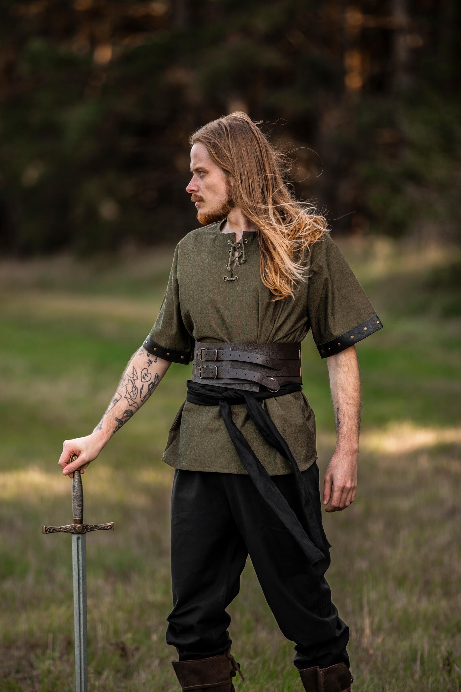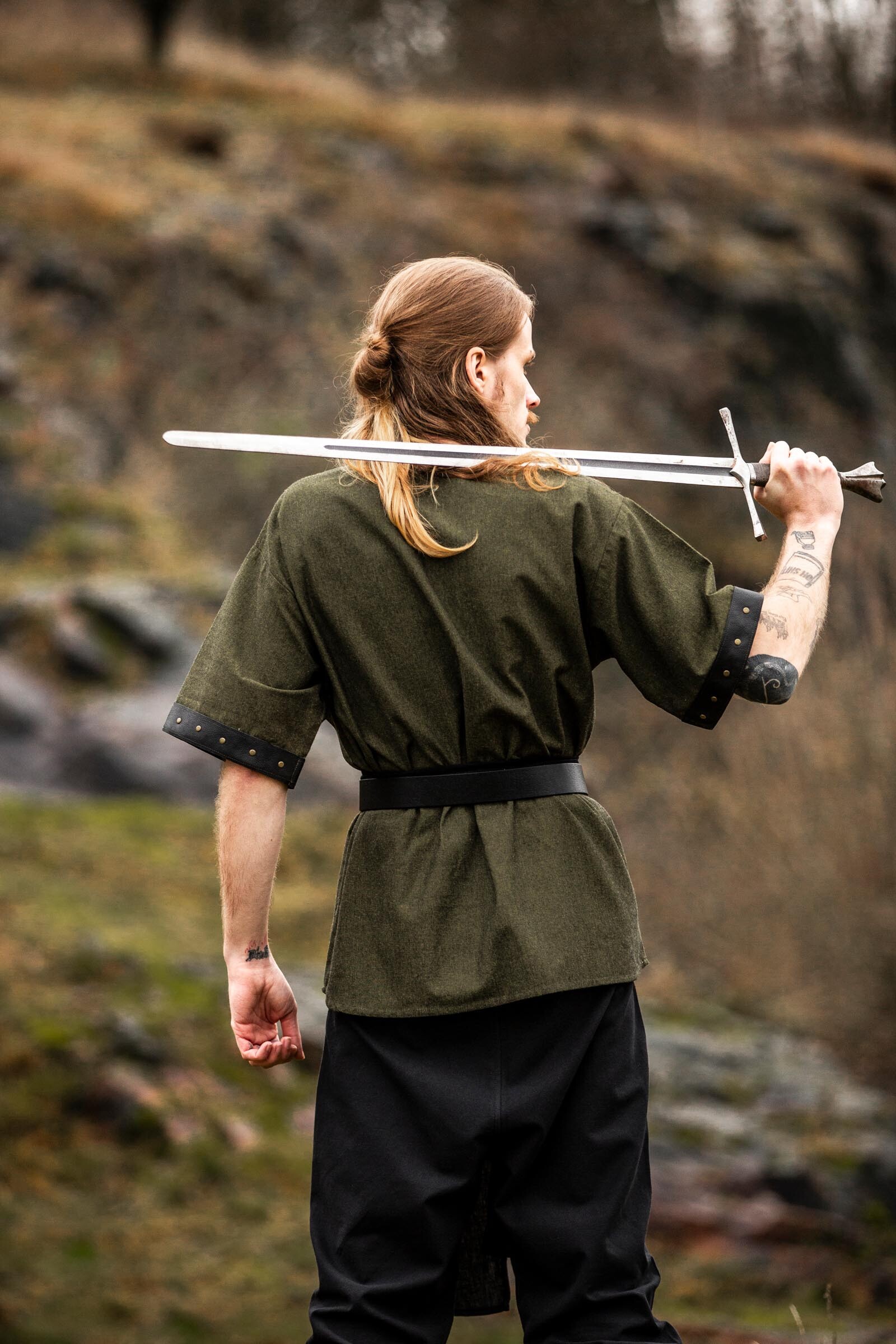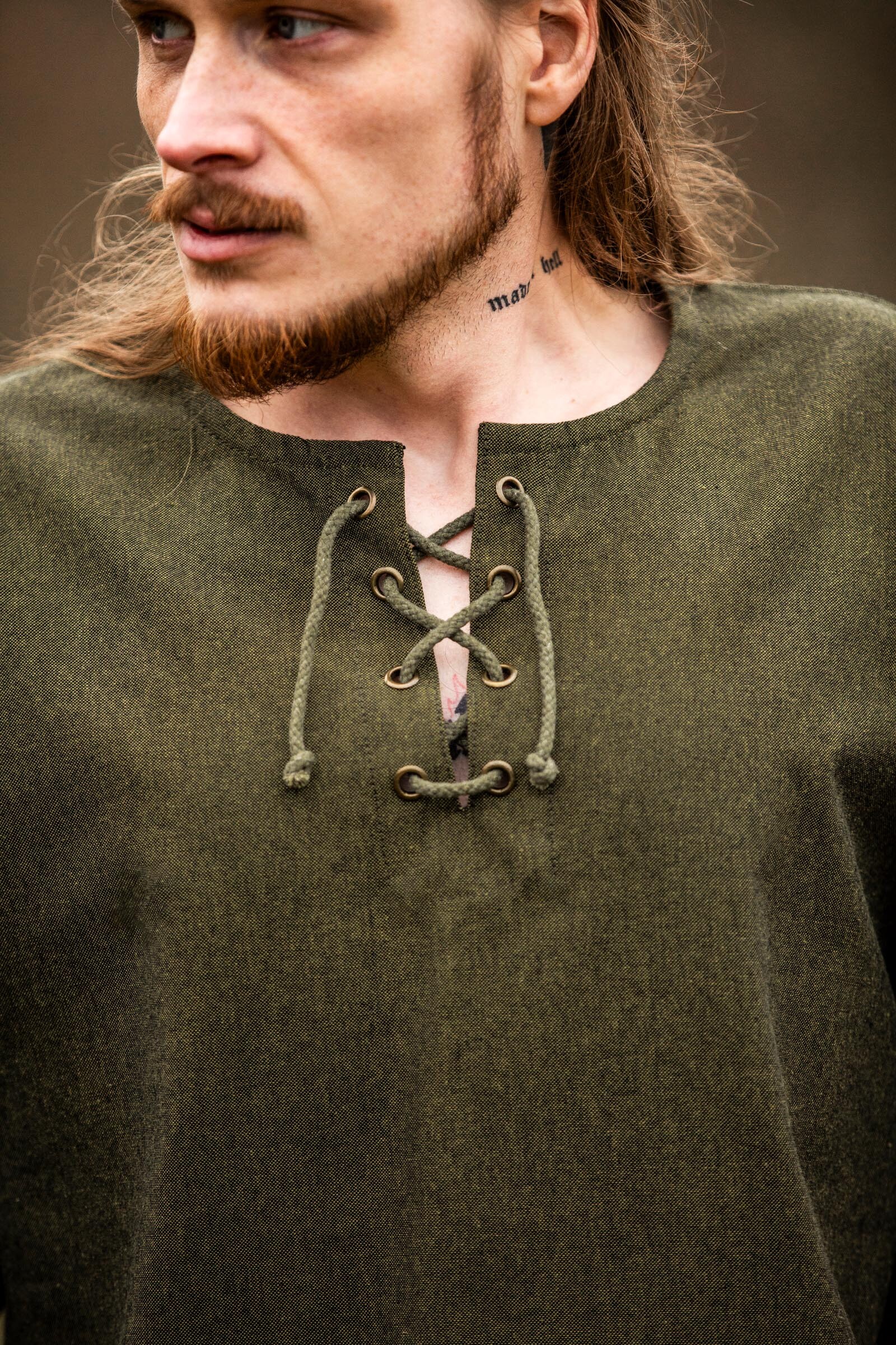 Dieses besondere Kurzarmhemd mit Lederapplikation ist genau die richtige Gewandung für die kommende wärmere Mittelaltersaison. Es besteht aus robuster Baumwolle und besitzt an den kurzen Ärmel als Abschluss eine Lederapplikation sowie eine Schnürung im Brustbereich. Das Kurzarmhemd mit Lederapplikation ist ideal für jeden Mittelaltermarkt oder LARP Veranstaltung im Sommer und für Besucher, Einsteiger, Abenteurer, Händler und Handwerker.