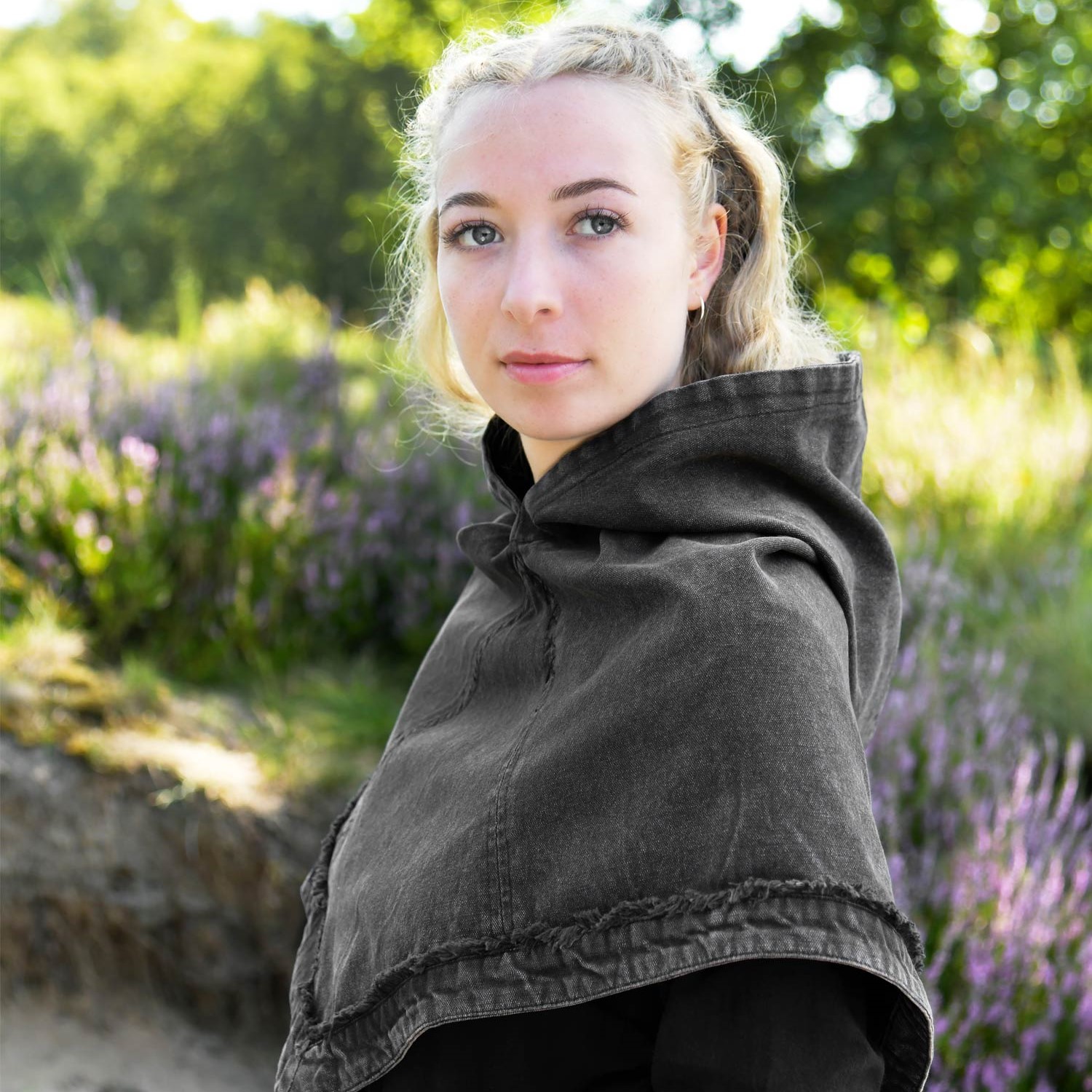 Die LARP Gugel für Einsteiger & NPC`s wurde aus robuster Baumwolle gefertigt und besitzt einen used Look, als ob sie schon ewig getragen wurde. Deswegen eignet sie sich perfekt für NPC`s beim LARP aber auch Einsteiger die nicht sofort mit ihren Bügelfalten auffallen wollen. Dank ihres klassischen Design, welches nach historischen Schnitt aus Skandinavien hergestellt wurde, lässt sich diese LARP Gugel mit vielen verschiedenen Gewandungen kombinieren. Die Gugel wird wie eine eigenständige Kapuze getragen und bedeckt Kopf, Hals und Schultern und liegt dabei angenehm an, ohne einzuengen. Eine kleine Kordel im Nacken sorgt für eine individuelle Anpassung und einen sicheren Sitz, egal ob beim Streifzug durch den Wald, der Con oder auf dem Mittelaltermarkt.