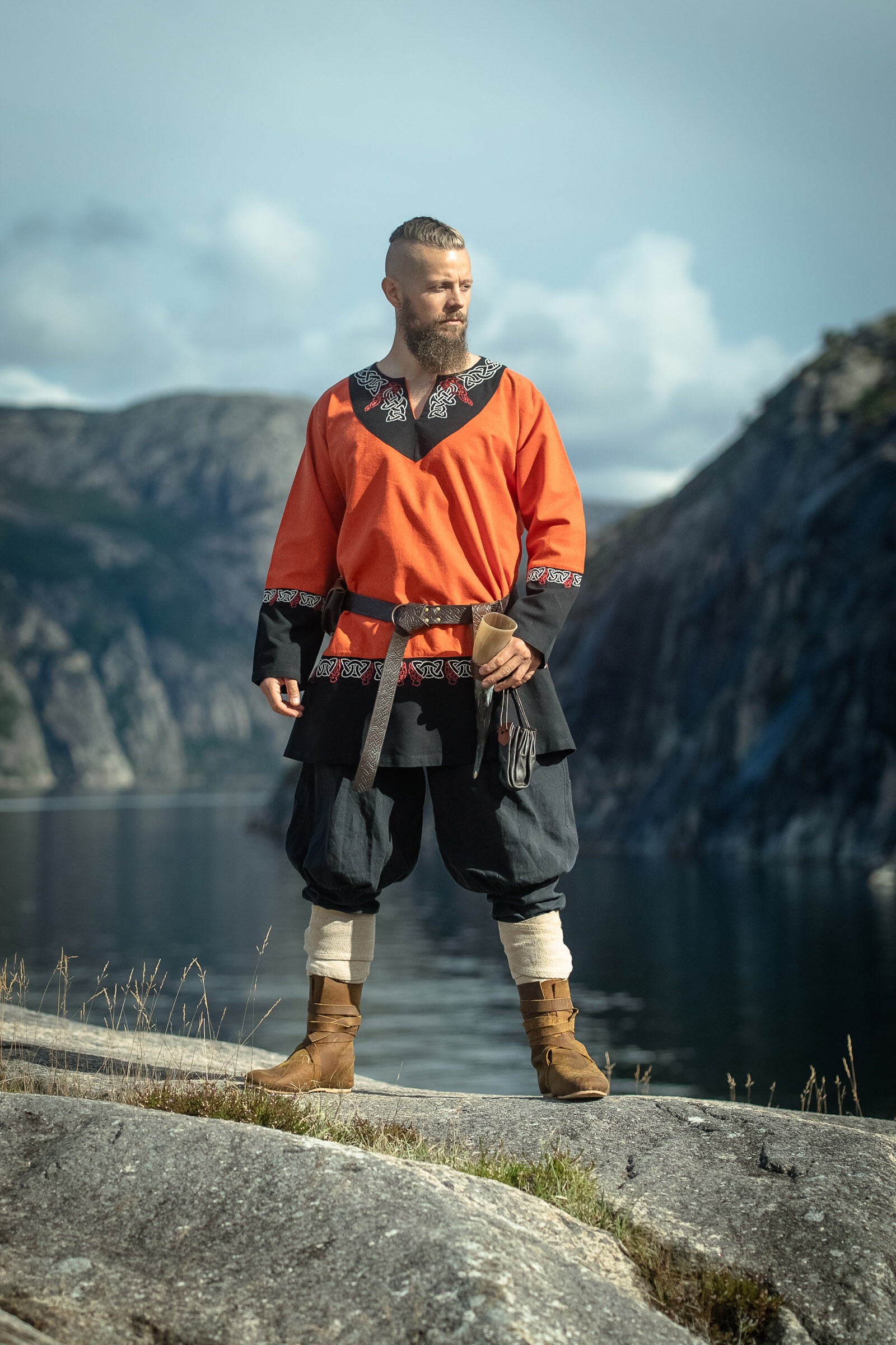 Unsere langärmelige Wikinger Tunika mit ihrer aufwendigen frühmittelalterlichen Stickerei im Hals-, Ärmel- und Saumbereich wurde aus hochwertiger Baumwolle in Handarbeit gefertigt und besitzt einen weit ausgestellten Unisex Schnitt. Du solltest deine Wikinger Tunika mit einen Gürtel kombinieren, damit sie nicht wie ein weiter Sack aussieht. Diese Tunika ist in mehreren Farben erhältlich und passt perfekt als Wikinger Kleidung zu Viking Fans auf den Mittelaltermarkt, Cosplay, zu einem Wikingeressen und ins LARP!