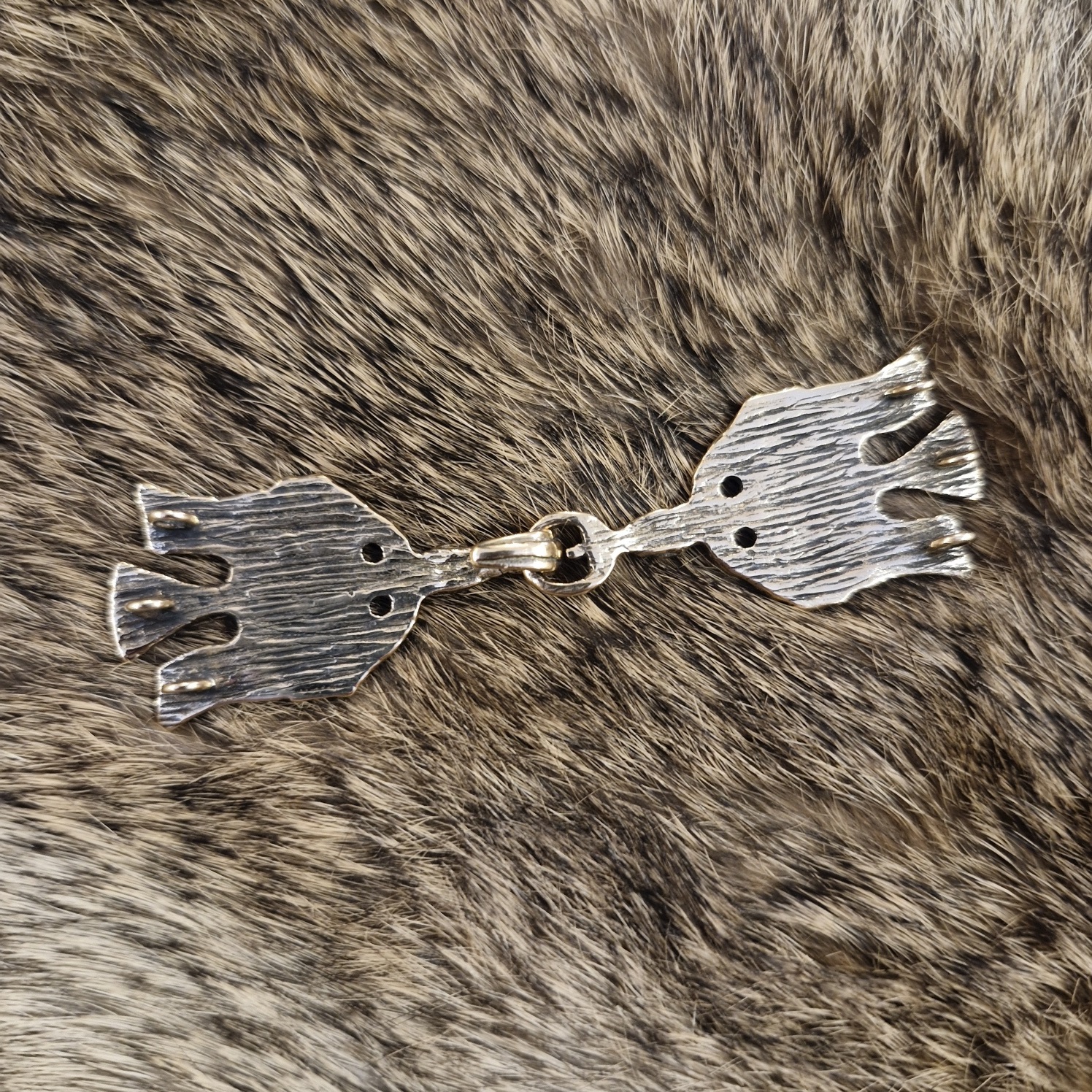 Dieser frühmittelalterliche Gewandschließe Wikinger Raben im Borre-Stil wurde aus stabiler Bronze gegossen. Als Original diente der Fund eines Wadenwickelhaken, der in Jaroslav gefunden wurde und aus dem 10. Jahrhundert stammt, was ihn perfekt zu Wikinger oder Kiewer Rus Reenactment macht. Auf der Rückseite befindet sich jeweils 3 Ösen zum DIY befestigen an deiner Gewandung. Die Gewandschließe Wikinger Raben im Borre-Stil ist auch bestens geeignet für Cosplay, LARP und den Mittelaltermarkt.