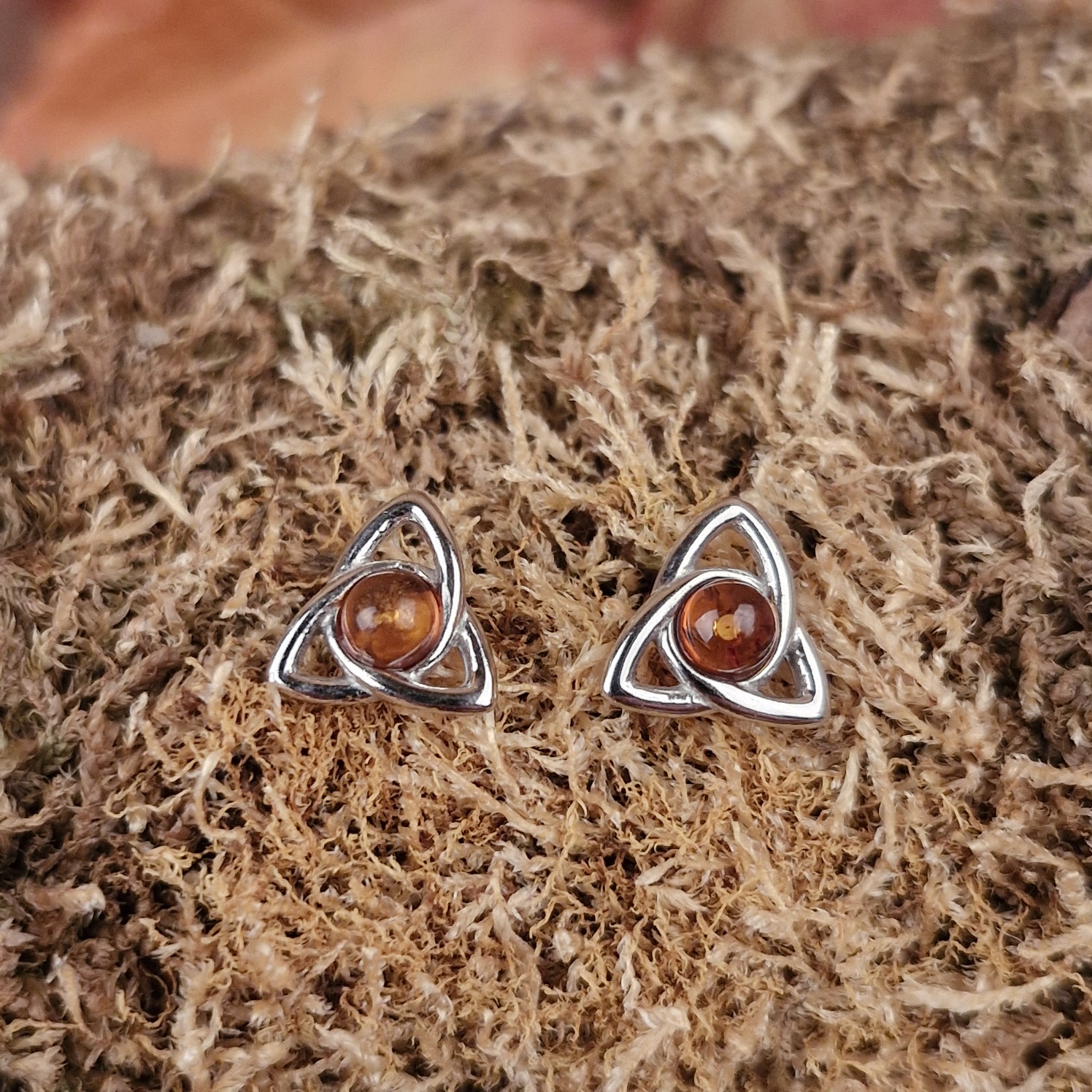 Ohrstecker Triquetra mit Bernstein aus Silber