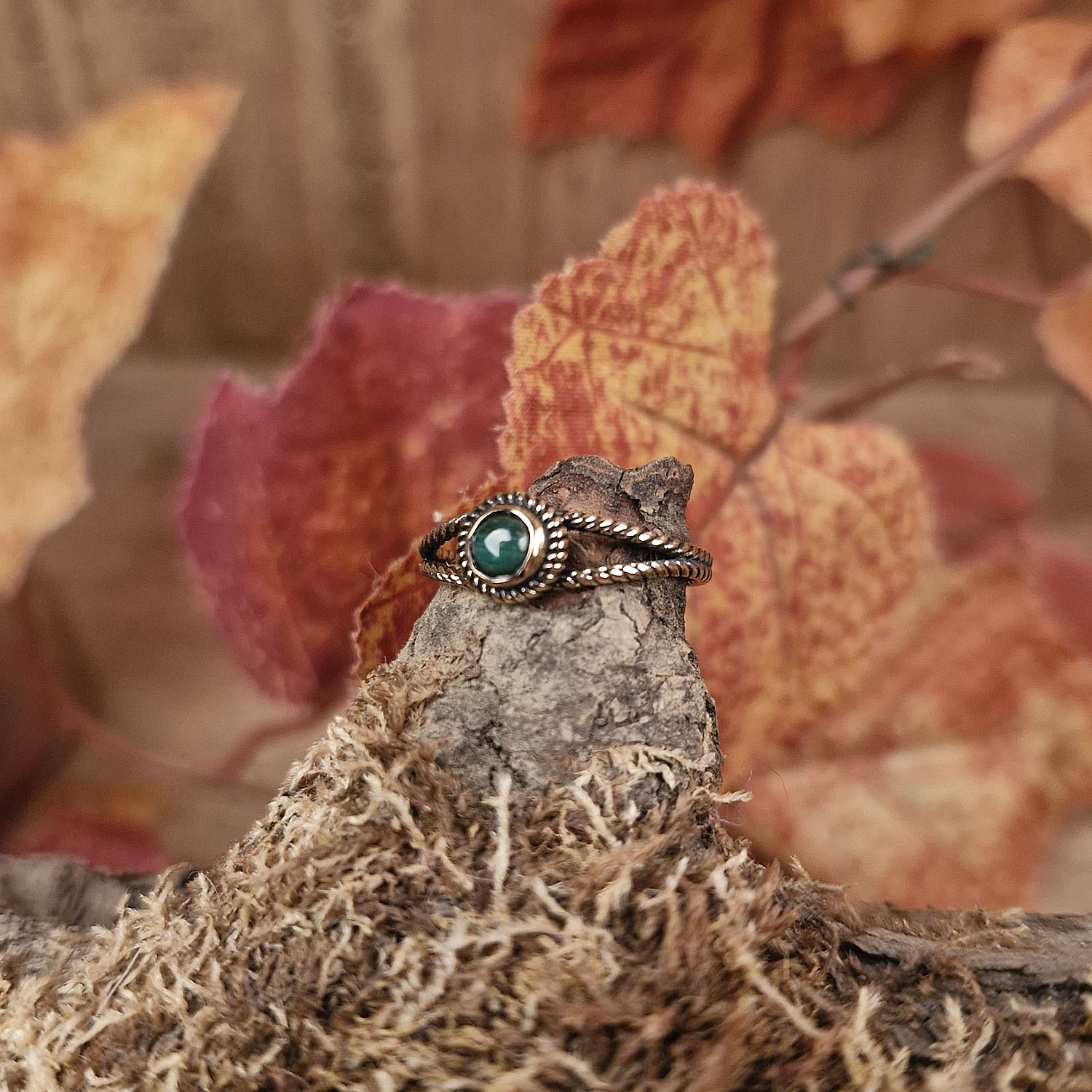 Dieser filigrane gedrehte Ring wurde in Handarbeit aus robuster Bronze gefertigt und mit einen hochwertigen Stein veredelt. Der Halbedelstein wurde zentral eingepasst und ist das Highlight des Bronzerings. Das gedrehte Design des Rings mit Stein aus Bronze ist formschön und zeitlos und kann überall getragen werden, auf den Mittelaltermarkt, im Alltag oder beim LARP und besonderes Geschenk.