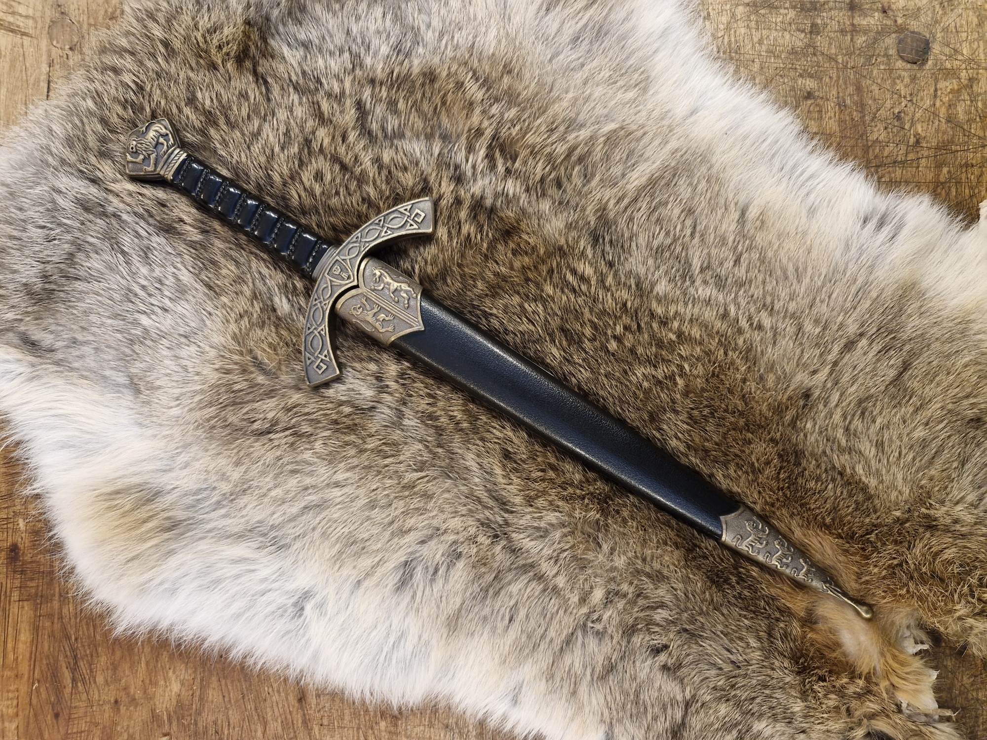 Der mittelalterliche Deko Dolch Löwenherz wurde aus rostfreien Stahl gefertigt und besitzt ein gebogenes Parier plus verzierte Scheide. Dolche wie diese wurden im Mittelalter nicht nur von Rittern verwendet. Die ideale Dekoration für Fans von Ritter und Löwen.