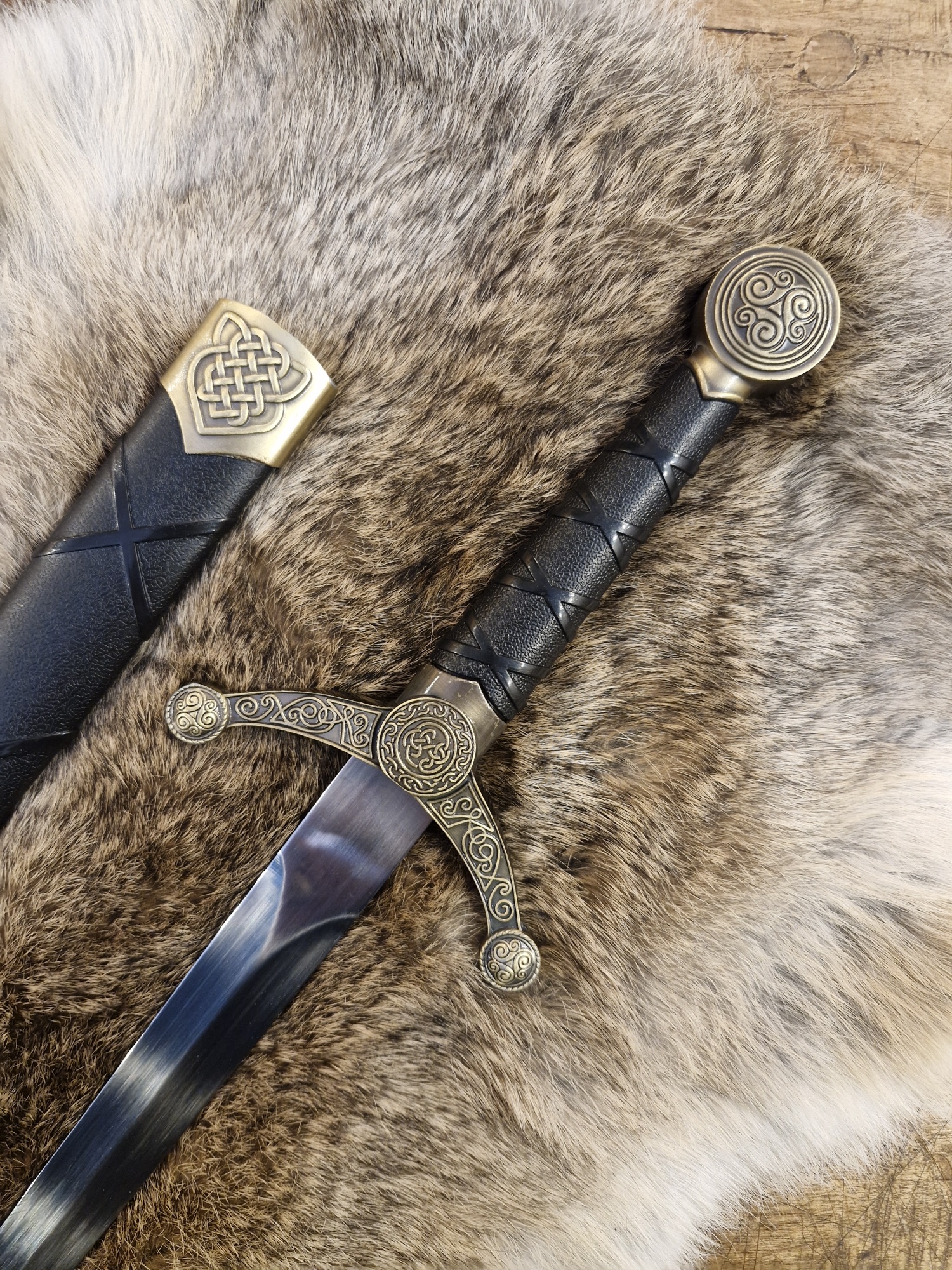 Dieser Dolch mit keltischen Verzierungen besteht aus einer rostfreien Klinge und besitzt eine passende Dolchscheide. Auf Parier, Ortband und Knauf befinden sich Keltischen Knotenmuster und Triskel als Verzierung. Der Dolch mit keltischen Verzierungen ist die perfekte Dekoration, Geschenk oder Accessoires für Wicca Anhänger und Kelten bzw Fantasy Fans!